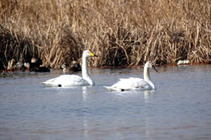 지난달 22일 평택참여자치시민연대에서 실시한 생태학교 마지막 탐사 중 통복천하수종말처리장 부근 안성천하구에서 고니가 발견된 이후 현재까지 머물고 있는 것이 발견돼 관심이 모아지고 있다. 지난해의 경우 2월 6일 한 가족으로 보이는 5마리가 약 2시간을 머물다 사라져 아쉬움을 남긴바 있다.