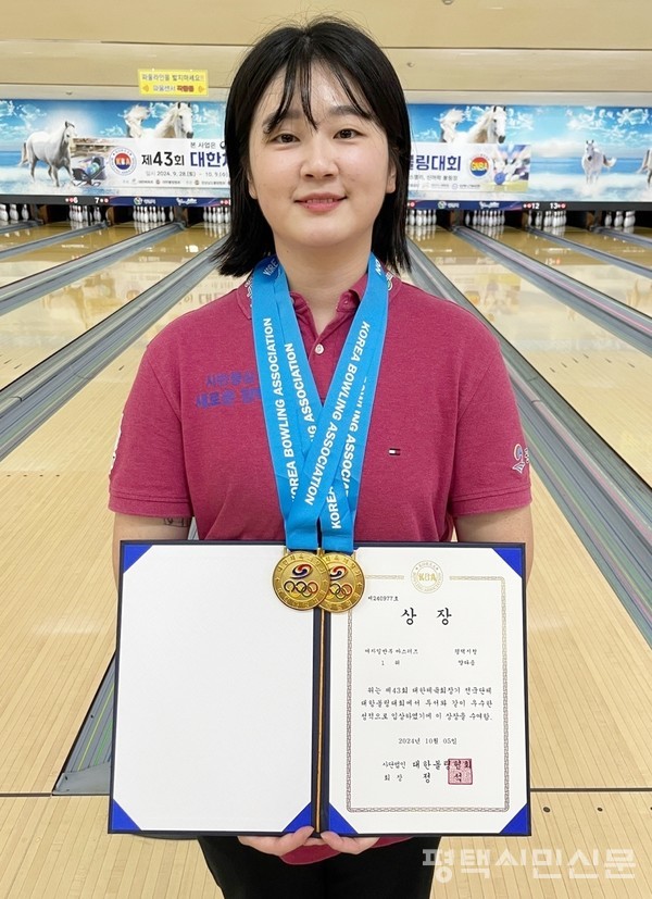 평택시청 양다솜 선수가 ‘제43회 대한체육회장기 전국단체대항볼링대회’ 여자일반부 마스터즈에서 정상에 올랐다.
