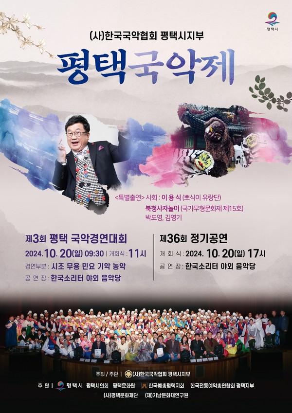(사)한국국악협회 평택시지부는 10월 20일 한국소리터 야외음악당에서 평택국악제를 개최한다.