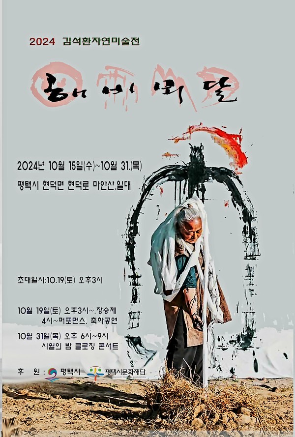 행위예술가 김석환 작가가 자연미술전 ‘해(日) 비(雨) 뫼(山) 달(月)’을 10월 15일부터 31일까지 자신이 터를 잡고 살아가는 마안산 일대에서 풀어낸다.