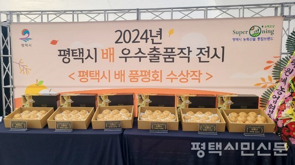 평택배 재배 농업인의 사기 진작과 격려를 위해 열린 품평회는 20점의 신고배 출품작 중 심사위원 평가를 거쳐 6점을 선정했고 11월 2일 ‘농업인의 날’에 우수출품작에 대한 시상과 전시를 진행했다.