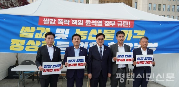 국회 농림해양수산위원회 소속 이병진 국회의원(더불어민주당·평택을)은 10월 30일 국회 소통관에서 민주당 농해수위 의원들과 기자회견을 열어 계속 하락하는 쌀값과 관련, 정부에 제대로 된 대책을 촉구한 후 31일부터 국회 천막농성에 돌입했다.