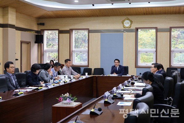 평택시의회 ‘평택시 종합장사시설 건립 연구회’가 11월 15일 평택시의회 간담회장에서 정책 연구용역 최종보고회를 열었다.