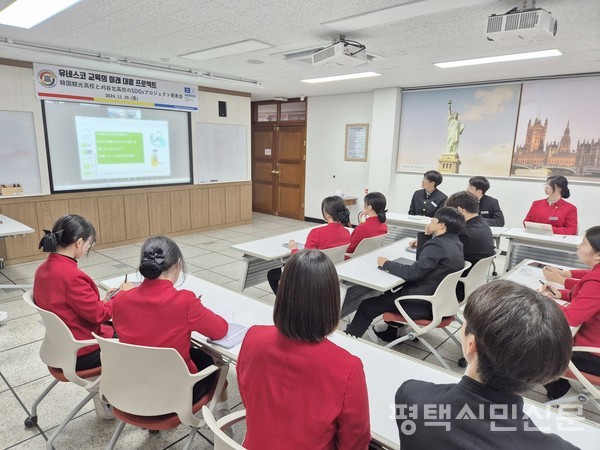 한국관광고등학교는 11월 29일 일본 아이치현립 카리야키타고등학교와 함께 진행한 ‘SDGs 공동 프로젝트’ 성과 발표회를 열었다.