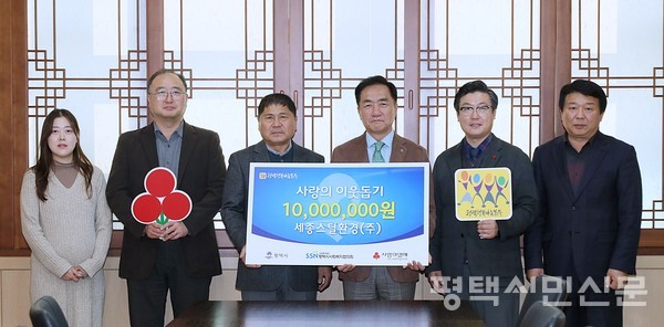 세종스틸환경(주)는 12월 4일 평택시청 대외협력실에서 평택행복나눔본부에 성금 1000만원을 전달하였다.