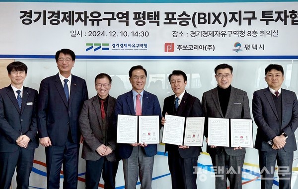 이날 최원용 경기경제자유구역청장은 이병락 후쏘코리아㈜ 대표, 정장선 평택시장, 김재균 경기도의원이 참석한 가운데 투자협약을 체결했다.
