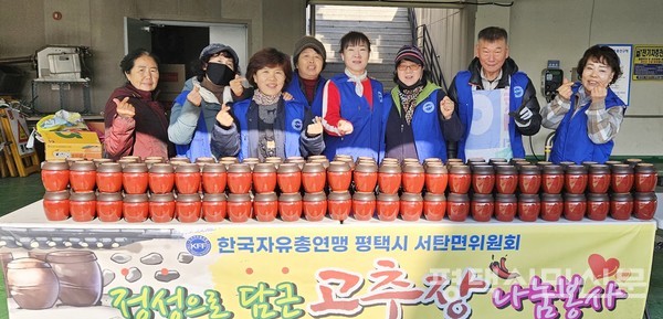 한국자유총연맹 평택시 서탄면위원회는 12월 5일 서탄면 행정복지센터에서 회원 20여 명이 참여한 가운데 ‘정성으로 담근 고추장 나눔 봉사’행사를 진행했다.