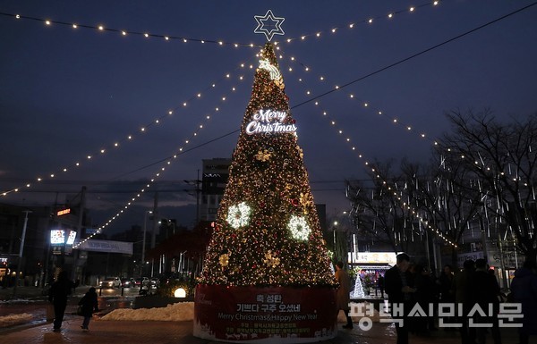 12월을 맞아 어둠을 환하게 비출 성탄 트리가 평택역 서부광장에 불을 밝혔다.
