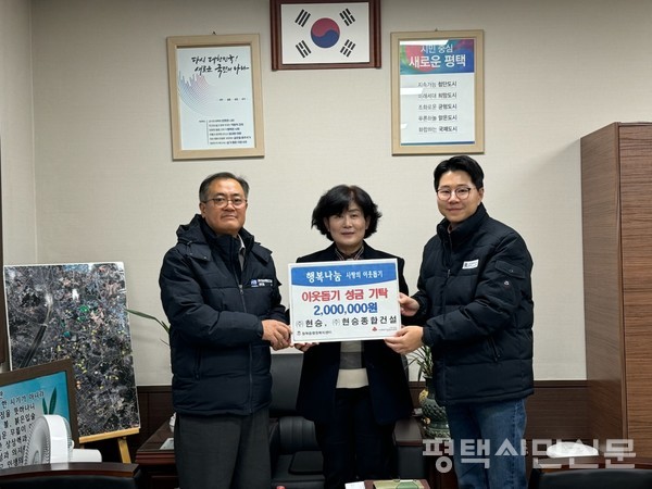 청북읍에 위치한 두 기업은 매년 정기적으로 이웃돕기 성금을 기부하며 어려운 이웃을 돕는 데 앞장서고 있다. 이현환 현승 대표와 이승규 현승종합건설 대표는 “연말을 앞두고 어려운 이웃에게 따뜻한 마음을 전하고자 기부하게 됐다”고 말했다.