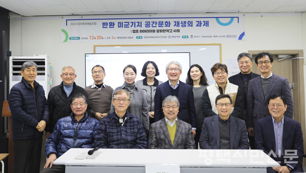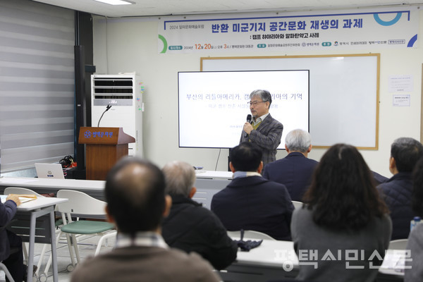 고덕면 율포리에 위치한 미군 알파탄약고 반환이 가시권에 들어 온 가운데, 알파문화예술공원추진위원회와 평택문화원이 주최한 ‘반환 미군기지 공간문화 재생의 과제’ 주제로 ‘2024 알파문화예술포럼’이 개최됐다. ‘캠프 하야리아와 알파탄약고 사례’를 부제로 12월 20일 평택문화원 대동관에서 진행된 이번 포럼은 반환 미군기지인 부산 캠프 하야리아를 시민공원으로 조성한 사례를 살펴보고 반환 예정인 고덕 알파탄약고의 바람직한 활용방안에 대한 토론으로 진행됐다. 기조발표는 유현 부산시립박물관 유물관리팀장이 “부산의 리틀아메리카 캠프 하야리아의 기억(부제-미군 캠프 잔존 시설물의 보존과 활용을 중심으로)”을 주제로, 황우갑 알파문화예술공원추진위원회 사무국장이 “알파탄약고 공간문화재생 연구”를 주제로 진행됐다. 이어진 토론에서는 김방 전 국제대 총장이 좌장을 맡아 이수연 알파문화예술공원추진위원회 대표, 김기수 평택시민신문 발행인, 오치성 고덕동주민자치위원장, 경희대 국제한국언어문화학과 박사과정을 수료한 지여정씨, 방유미 민세아카데미 이사가 참여해 토론을 진행했다. <평택시민신문>은 이날 포럼 주제발표와 주요 토론 내용을 정리해 독자들에게 전달한다.