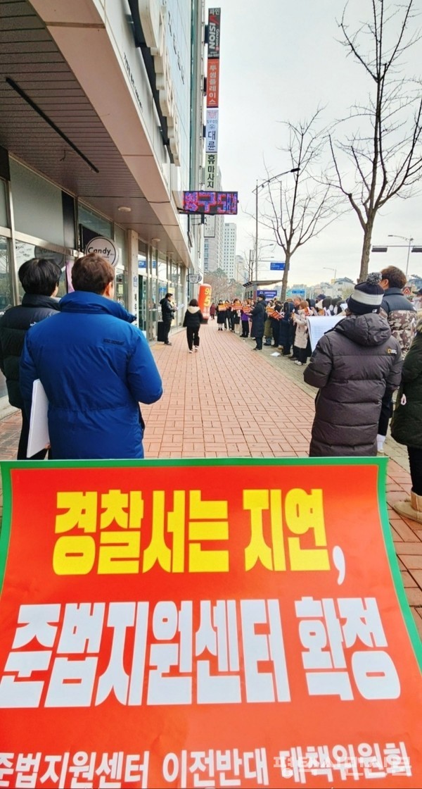 고덕국제신도시연합회와 준법지원센터 이전 반대대책위는 12월 20일 동삭동 평택준법지원센터 앞에서 집회를 열고 이전 계획 철회를 촉구했다.