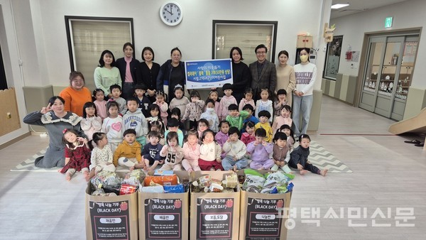 평택시립고덕LH2단지어린이집은 1월 9일 올해의 기부 컬러인 ‘블랙’과 관련한 50만원 상당의 식료품을 평택행복나눔본부에 전달했다.