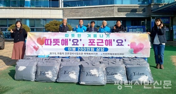 경기도자동차전문정비사업조합 평택북부지회는 1월 17일 이불 30채와 휴지 30개 등 200만원 상당의 물품을 진위면행정복지센터에 전달했다.
