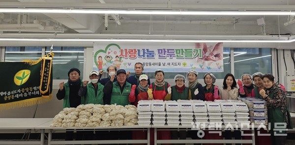중앙동 새마을 남녀 지도자협의회는 1월 21일 중앙동주민자치센터 지하식당에서 설 명절맞이 만두 나눔을 진행했다.