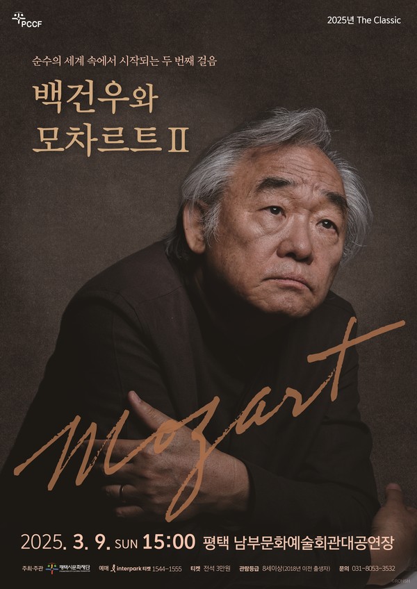 이번 공연에서 백건우는 지난 2024년부터 모차르트 프로젝트를 통해 모차르트의 전 생애를 탐구하고 그의 음악과 인생을 깊이 해석해온 음악 여정을 평택시민에게 들려주는 자리다.