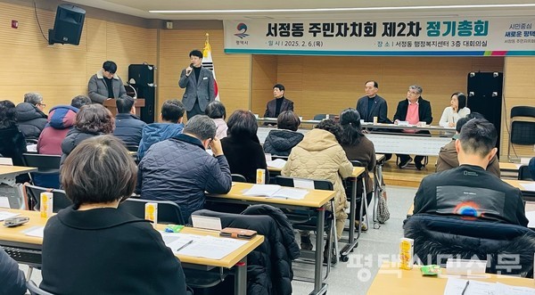 평택시 서정동 주민자치회는 2월 6일 서정동 행정복지센터 3층 대회의실에서 주민자치위원 등 40명이 참석한 가운데 2025년 2차 정기총회를 개최했다.