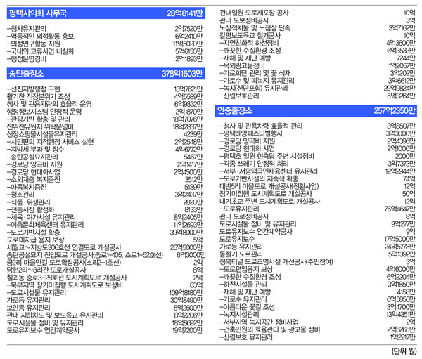 2000만원, 찾아가는 온라인 실생활 정보 1000만원, 청사관리 1억8814만원, 소규모 주민숙원사업 4400만원 등을 쓴다.
