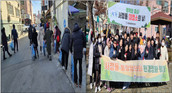 서정동 행정복지센터는 2월 24일 서정동 통장협의회가 새봄맞이 환경정화 활동을 실시했다. 행정복지센터 직원 등 약 45명이 참여한 이번 활동은 주요 도로변, 점촌 공원, 주택가 골목길의 쓰레기를 수거하고, 불법 광고물 제거 및 재활용 분리수거 활동에 집중했다.