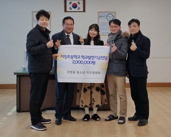 기금 전달식에는 최태용 서정동장, 지선아 지장초 교장, 청소년위원회 임원과 학교 관계자들이 참석해 발전기금 전달 의미를 나누고 학생들의 학업 증진을 위한 협력을 다짐했다.