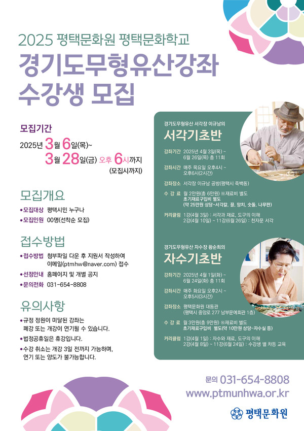 평택문화원은 2025년 평택문화학교 수강생을 3월 28일 오후 6시까지 모집한다.