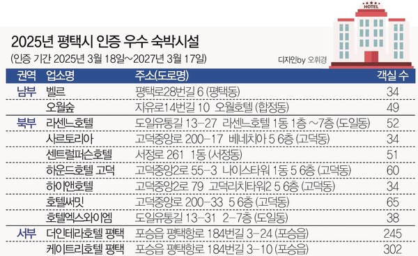 평택시는 3월 18일 ‘2025년 평택시 인증 우수 숙박시설’ 11곳을 최종 선정했다.