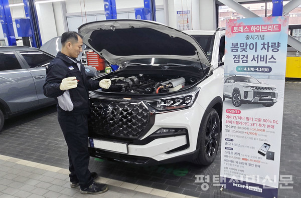 KG모빌리티(KGM)가 토레스 하이브리드 출시를 기념해 봄맞이 차량 점검 서비스를 시행한다.