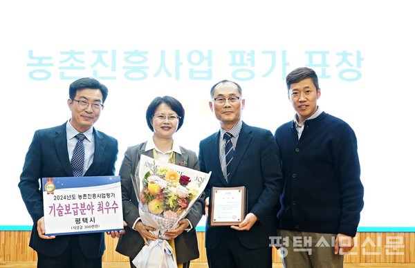 평택시농업기술센터가 경기도농업기술원 주관 ‘2024년 농촌진흥사업 평가’ 기술보급 분야에서 최우수 기관으로 선정돼 3월 31일 최우수상을 받았다.
