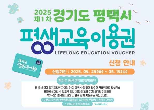 평택시는 2025년 제1차 경기도-평택시 평생교육이용권 지원사업 참가자를 5월 14일까지 모집한다.