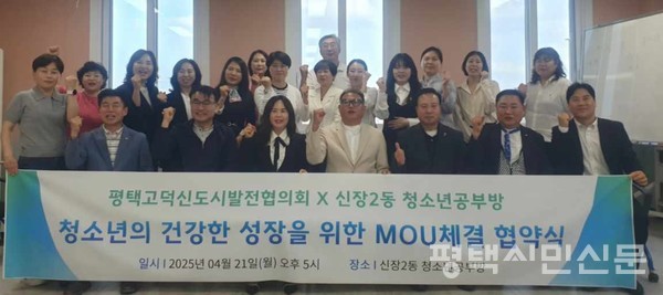 평택고덕신도시발전협의회(평신협)는 4월 21일 신장2동 청소년공부방과 청소년 학업 지원을 위한 업무협약을 체결했다.