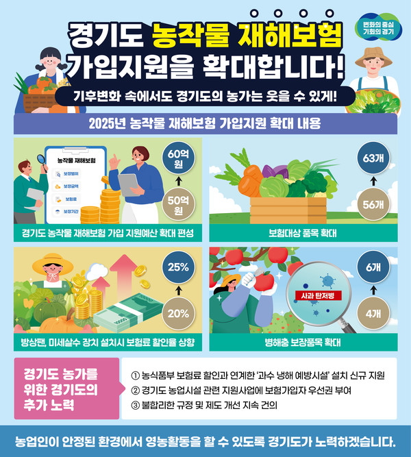 경기도가 기후변화에 따른 자연재해에 선제적으로 대응하기 위해 농작물재해보험 지원을 확대한다.