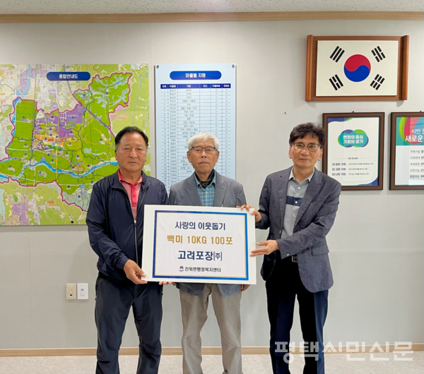 고려포장(주)는 5월 22일, 가정의 달을 맞아 백미(10kg) 100포대를 진위면행정복지센터에 기부했다. 이날 전달된 백미는 지역내 취약계층 100명에게 전달됐다.