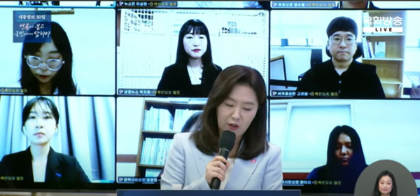강유정 대변인은 인사말을 통해 “대통령실 출입 기자뿐 아니라 지역언론 중에서도 자치와 분권을 지향하며 지역발전을 위해 애쓰는 풀뿌리 언론을 권역별로 안배해 모셨다”고 말했다. 대통령실은 전날부터 기자회견 당일까지 화상 연결 등을 확인·점검하는 절차를 거쳤다.