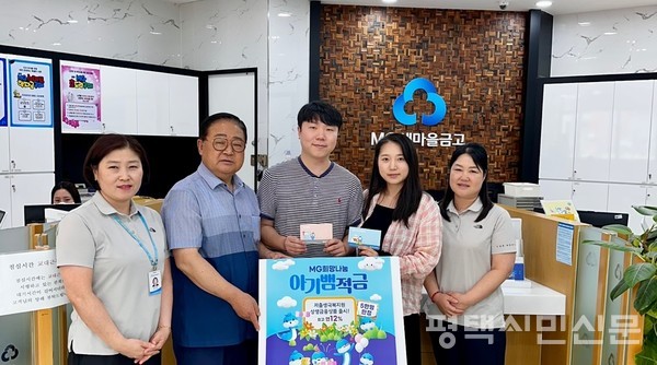평택새마을금고 동삭지점에서 7월 15일 최근 아기를 출생한 부부가 ‘MG희망나눔 아기뱀적금’에 가입했다.