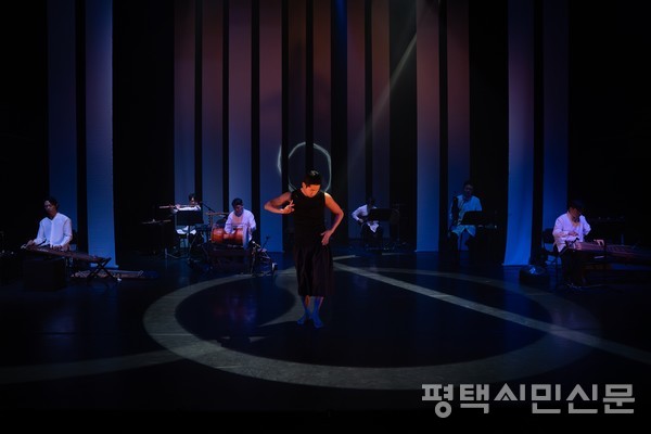 공연은 ‘공간의 시간’과 ‘거무장 장단’(동해안살풀이 반주장단) 두 개의 장으로 구성됐다. 첫 번째 장에서는 전통 ‘오채질굿’ 장단을 2박과 3박으로 분해해 새로운 장단으로 재탄생시키며 두 번째 장에서는 동해안 살풀이 리듬을 변형해 무용수들의 움직임과 미디어 아트를 통해 관객들이 직접 체감할 수 있는 무대가 마련됐다.