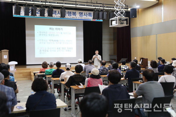 평택시민행복 명사특강은 평생학습센터가 시민들의 지식과 교양 증진을 위해 인공지능(AI), 환경, 인문학 등 다양한 분야의 전문가를 초청해 개최하는 강연이다. 이날 강연은 지역 우수 인재를 초청하는 ‘지역명사특강’의 두 번째 강의로 진행됐다.