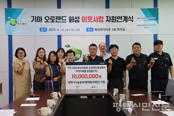 기아 오토랜드 노동조합 화성지회는 8월 13일 (재)평택복지재단에 이웃사랑 성금 1000만원을 전달했다.