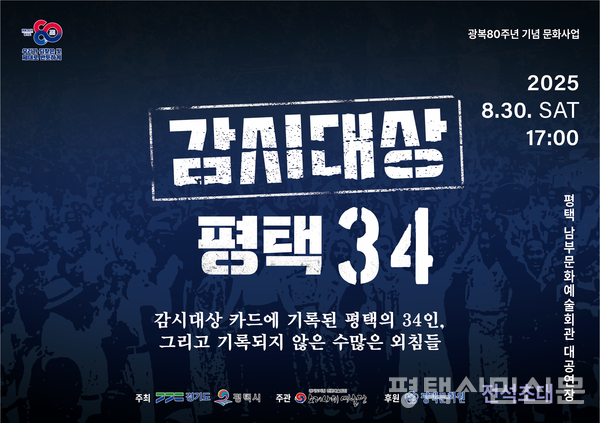 경기도와 평택시는 창작뮤지컬 ‘감시대상–평택34’를 8월 30일 오후 5시 평택시남부문예회관 대공연장에서 초연한다.