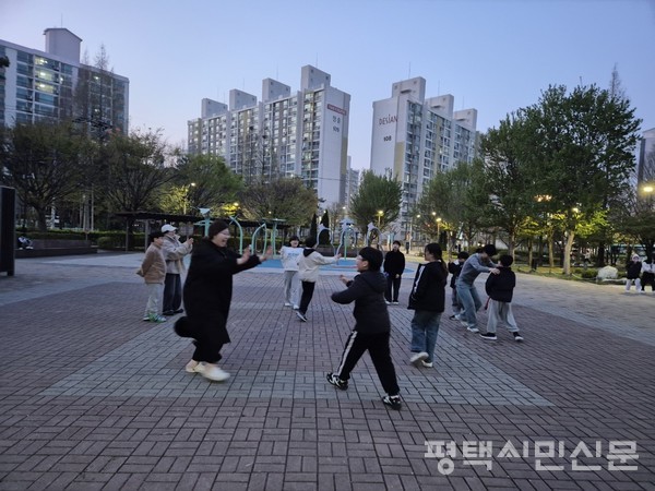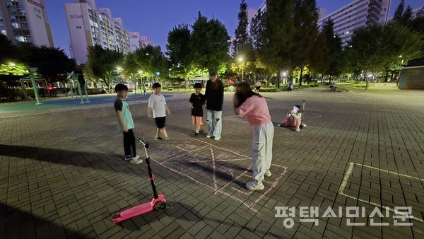 2021년에 평택시 창의채움교육센터가 진행한 초・중학생 대상 마을교육 프로그램에 공모하게 됐다. 마을의 이모·삼촌들이 아이들에게 특색 있는 교육을 제공하고 관계망을 형성하자는 취지로 기억한다. 마침 둘째 아이가 동네 아이들과 함께 놀 방법이 없을까 고민하고 있던 때였다. 아이들이 학원을 마치고 오후 6시쯤 세교근린공원에 모여 함께 노는 프로그램을 계획하고 ‘세교동 달밤놀이’라고 이름 붙였다. 어렸을 때 골목과 공터에서 놀았던 것처럼 동네 아이들과 맘껏 놀았다. 고무줄놀이·공기놀이·비석치기·오징어·얼음땡 등등 놀거리는 무궁무진하다. 재밌게 놀다 보면 주민들이 “어렸을 적 저렇게 놀았지”라며 지켜보셨다. 잘 논 아이들이 잠도 잘 자고 밥도 잘 먹으니 엄마들 반응도 좋았다. 엄마들은 공원에 나와 아이 노는 모습을 보며 수다 떨면서 친해졌다. 재미와 보람을 느끼며 잘 놀고 있었는데 지난해 마을교육 프로그램 지원이 끊겨 버렸다. 그러자 엄마들이 “십시일반 지원금을 낼 테니 달밤놀이를 계속했으면 좋겠다”고 하는 거 아닌가. 놀이지원금으로 운영했을 때 새로운 고민이 생겼다. 부모가 지원금을 내지 않는 아이가 달밤놀이에 오면 어떻게 할까. 협의 끝에 누구나 와서 놀게 했다. 놀이지원금은 ‘달밤놀이’라는 공공의 활동을 위해 쓰기로 한 것이니 그 혜택은 원하는 모두가 누리게 하기로 뜻을 모았다.