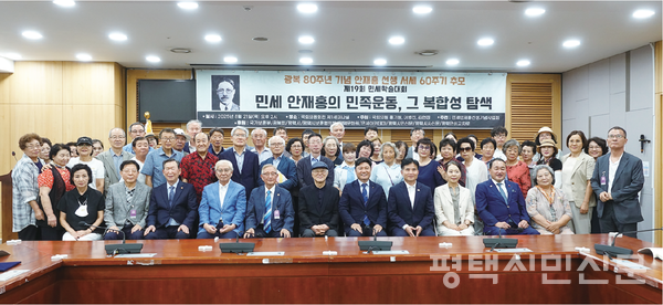 광복 80주년과 민세 안재홍 서세 60주기를 맞아 열린 학술대회는 평택시와 국가보훈부 등이 후원하고 평택지역 홍기원·이병진·김현정 국회의원이 공동 주최했으며 민세기념사업회 강지원 회장, 서경덕·김향순 부회장, 김방·백남추·안영민 이사, 홍기원․이병진 국회의원, 이익영 광복회 평택시지회장, 민세 손자 안영운씨 등 100여 명이 참석했다.