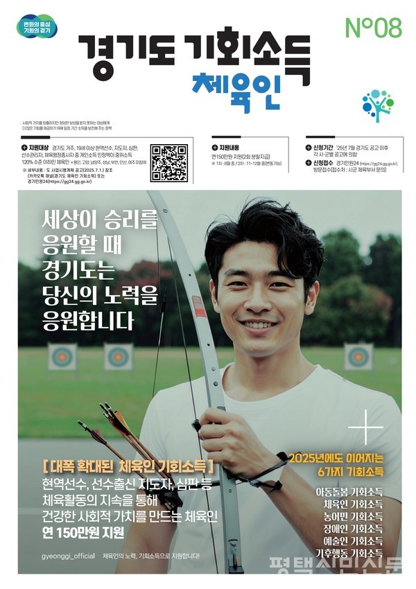 평택시는 체육인의 안정적인 활동 기반 마련과 지역 체육 발전을 도모하기 위해 추진하는 ‘경기도 체육인 기회소득’ 지원 사업의 참여 대상자를 9월 1일부터 11월 7일까지 모집한다.