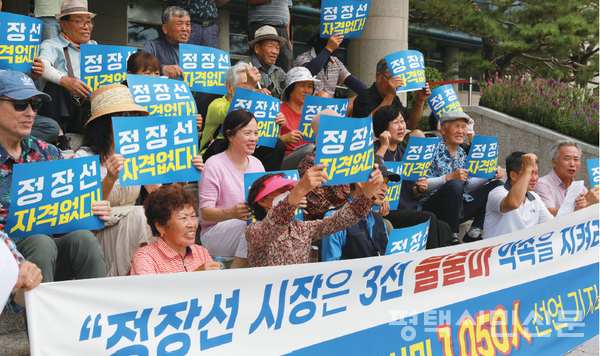 ‘정장선 시장의 3선 불출마 약속 이행’을 촉구하는 서명운동에 동참한 평택시민 1050인 기자회견이 9월 8일 평택시청 앞에서 열렸다.