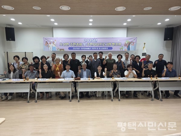 이날 총회에서는 주민투표로 2026년 주민참여예산인 우리 고장 바로 알기, 서로돌봄 내몸케어 등 6개 사업이 선정됐으며 오성면 주민자치회 운영 및 활동 보고 등이 이뤄졌다.