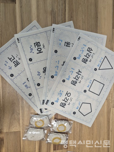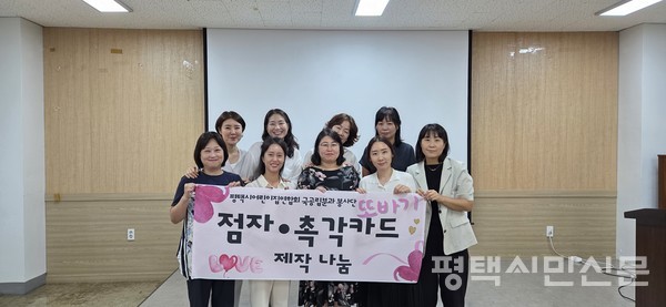 평택시어린이집연합회 국공립분과 ‘또바기’봉사단이 9월 2일 평택시자원봉사센터에서 직접 제작한 시각장애인을 위한 점자촉각 단어카드 180개를 사회적기업 담심포에 기부했다.
