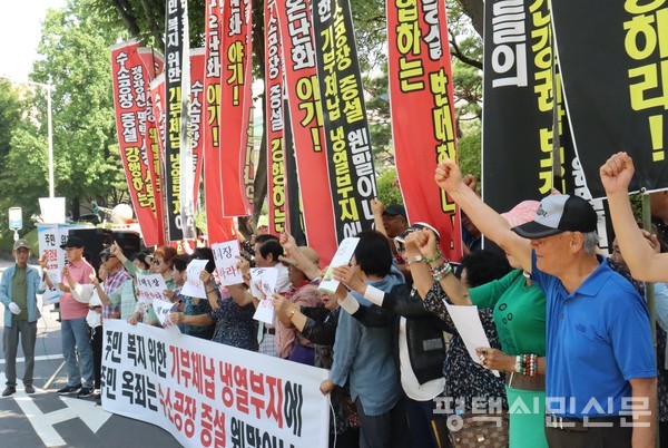 서평택환경위원회·포승산단환경위원회·포승읍이장협의회는 9월 15일 평택시청과 포승읍 원정리 수소공장 앞에서 수소공장 증설 반대 기자회견을 열었다.