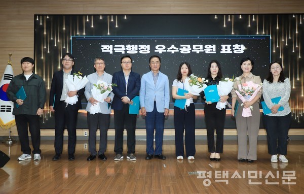 평택시가 10월 2일 하반기 적극행정 우수공무원을 선발해 시상했다. 이날 시상은 창의성과 전문성을 바탕으로 업무를 적극적으로 수행하여 시민의 편익을 증진시키고 시정 발전에 크게 기여한 공직자들의 노고를 격려하기 위해 마련됐다.