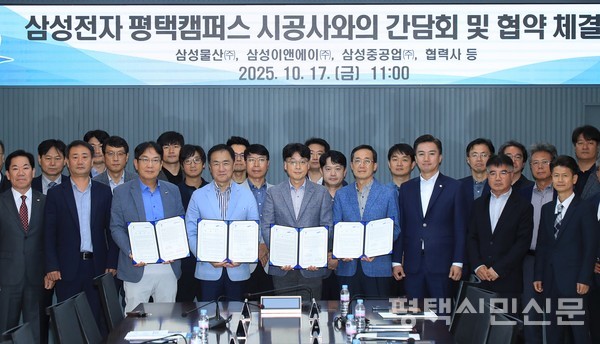 평택시는 삼성전자 평택캠퍼스 P4 건설공사 재개에 맞춰 10월 17일 삼성물산·삼성이앤에이·삼성중공업 등 주요 시공사 관계자들과 간담회를 열어 상생협약을 체결했다.