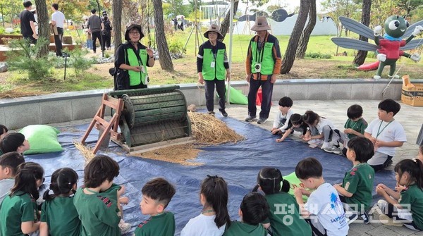 평택시가 제13회 경기정원문화박람회 기간 평택시 농업생태원에서 운영한 ‘오성뜰 벼 탈곡체험’ 프로그램이 시민들의 큰 호응 속에 마무리됐다.