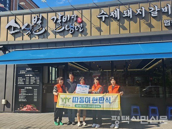 동삭동 지역사회보장협의체는 10월 15일 지역 취약계층 10가구에 월 2회 정기적으로 5가지 밑반찬을 지원할 예정인 소삿벌 법원직영점에 ‘따동이’ 5호점 현판을 전달했다.