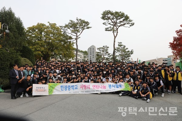 한광중학교는 10월 30일 교장실에서 평택연탄나눔은행에 사랑의 연탄 3900장을 기부했다. 사랑의 연탄은 교복나눔장터와 사랑나눔 바자회를 개최한 수익금으로 마련됐으며 한광중이 이날까지 기부한 연탄은 누적 5만7400장이다.