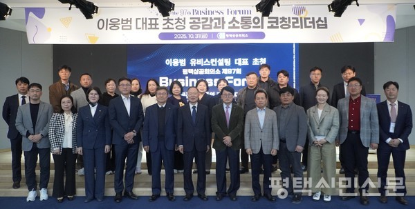 평택상공회의소는 10월 31일 평택상공회의소 6층 컨퍼런스룸에서 이웅범 대표를 초청해 ‘공감과 소통의 코칭 리더십’을 주제로 제97회 비즈니스포럼을 개최했다.